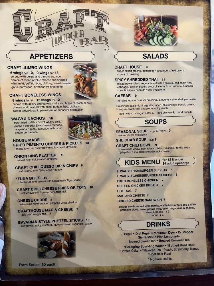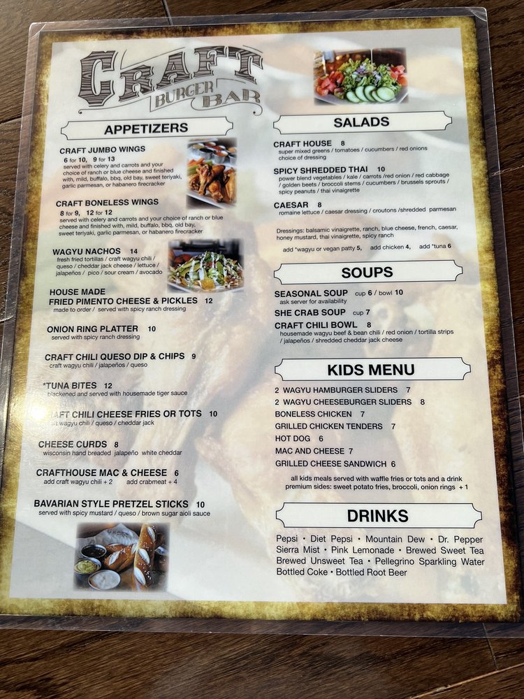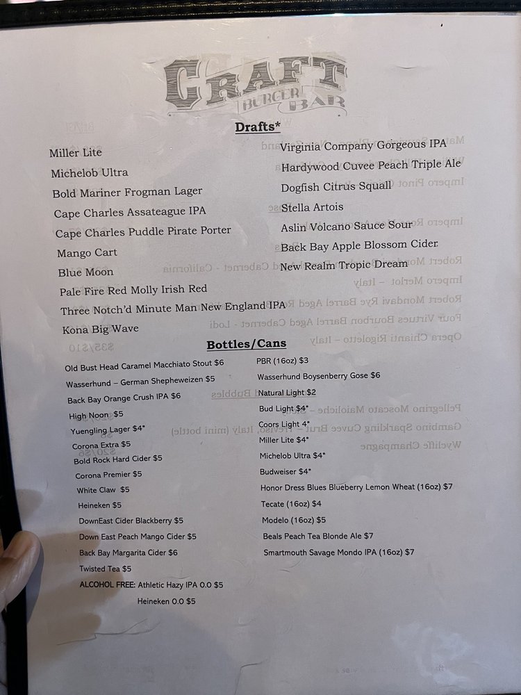 Craft Burger Bar, located in Virginia Beach, offers a diverse menu of craft burgers made to order with a variety of delicious toppings. The restaurant provides a casual and trendy atmosphere, perfect for groups, families, or a dinner out. Their waffle fries and fried cheese curds make for tasty appetizers, while their signature burgers like the Aristocrat and Nacho are messy but undeniably delicious. The restaurant also offers a selection of IPAs and a full bar. Customers have raved about the quality of the food, quick service, and friendly staff. Craft Burger Bar stands out for its elevated burger offerings, including Wagyu beef options, sure to satisfy any burger lover's cravings. Don't miss the unique soft pretzel app with flavorful dips and the gender-neutral restrooms adding to the inclusive environment. Overall, Craft Burger Bar is a must-visit spot for burger enthusiasts looking for a satisfying and enjoyable dining experience.