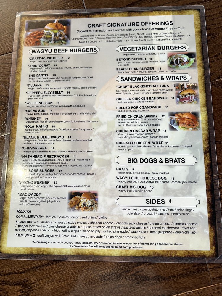 Wagyu Beef, Crafthouse sauce, lettuce, american cheese, pickles, onions